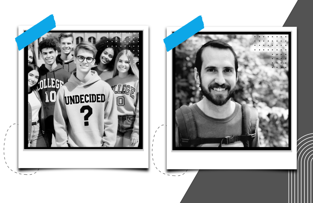 For students who are undecided on their college choice, the May 1st deadline can be a scary one for a number of reasons. Some colleges will rescind their offer of admission if students do not declare by this date. In addition, there is added peer pressure for many high school seniors because their friends will be talking about their college decisions as the May 1st deadline approaches. At many high schools, students even wear their college t-shirts and sweatshirts to school on May 1st to celebrate their college choice and show everyone where they are attending. But what about the undecided students who have not decided on a college or have not decided if college is the right choice for them? What are they supposed to wear? (Cue my AI-generated “Undecided” sweatshirt kid)